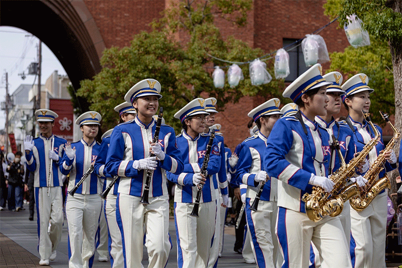 2日はオープニングパレード、オープニングセレモニー、3日は吹奏楽部単独コンサート、応援部乱舞、4日はグランドフィナーレに出演させていただきました。