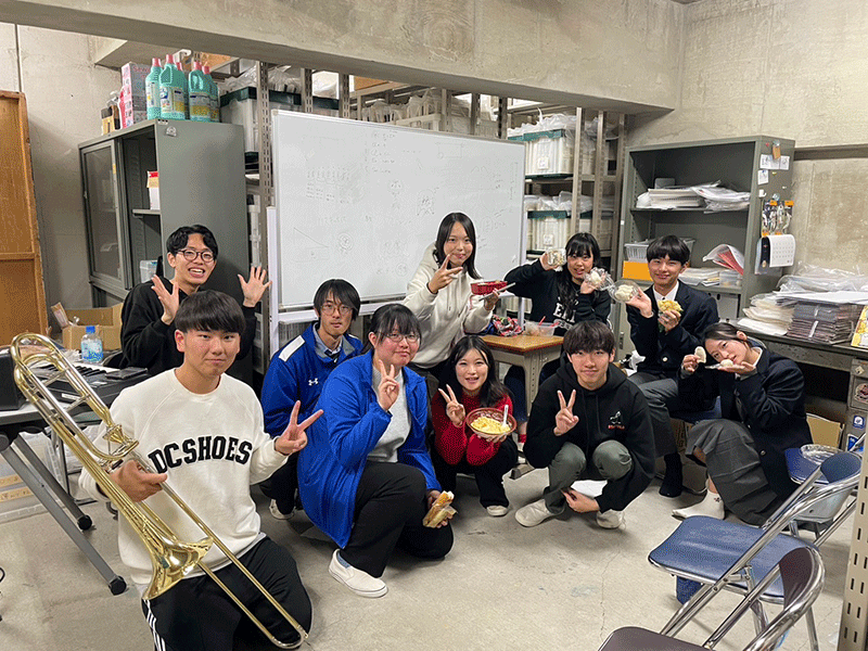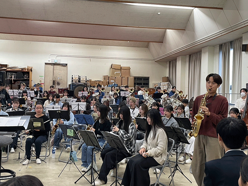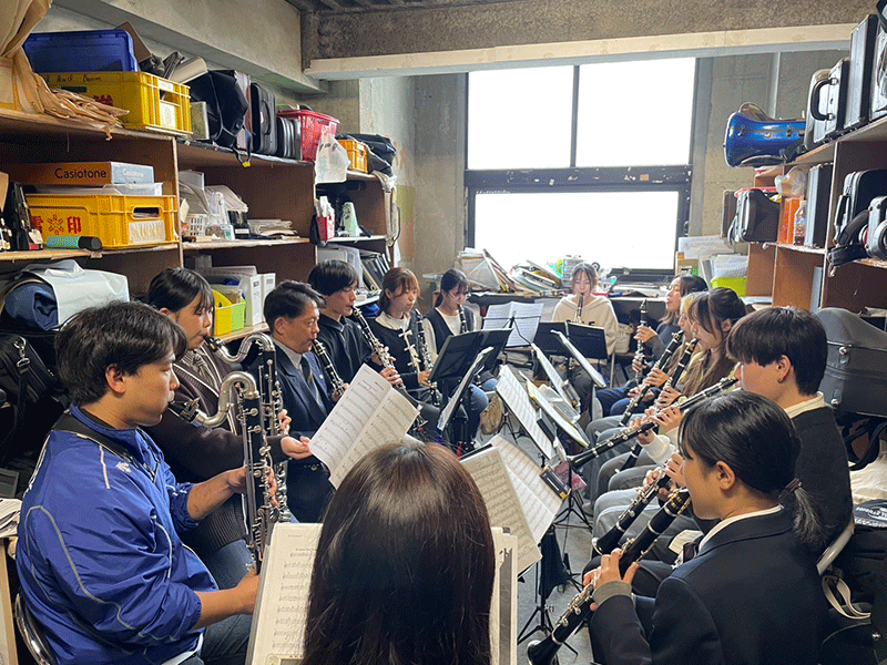 大阪府立淀淀商業高校吹奏楽部の皆さんと合同練習を行いました。 「故郷の空 in Swing」を一緒に練習し、またパート練習や昼食などを通じてお互いに交流を深め合いました。 淀商業高校の皆さん、ありがとうございました。