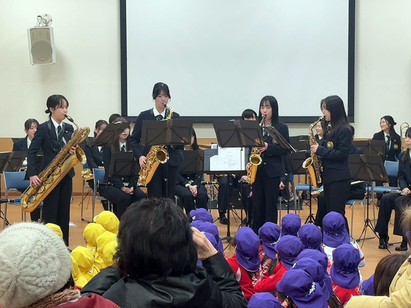 布施警察署「110番の日」に出演致しました。 「勇気100%」「夢をかなえてドラえもん」、サックスアンサンブルで「アンパンマンメドレー」などを演奏しました。 子供たちから大人の方までたくさんの方の笑顔を見ることができ、とても温かな時間となりました。 今回の経験を励みに、これからも音楽を通して地域の皆様に元気と笑顔を届けていきます。