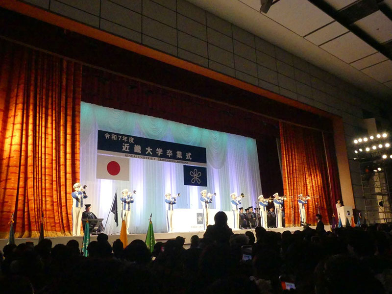 近畿大学令和7年度卒業式が行われました。 式典ではファンファーレと学歌を披露し、卒業生の皆さまの門出を音楽で彩りました。 厳かな雰囲気の中にも華やかさを添えることができ、私たちにとっても大変貴重な経験となりました。 卒業された皆さま、本当におめでとうございます。 これからの新たな道へ進まれる皆さまのご活躍とご多幸を心よりお祈りしております。