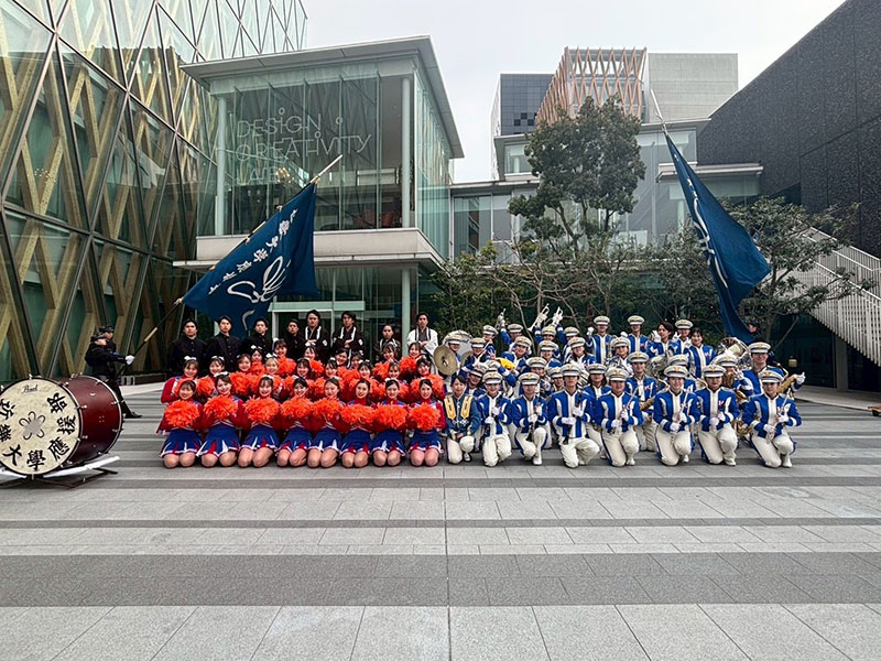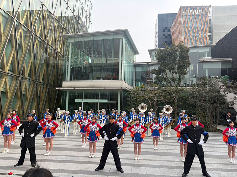 近畿大学オープンキャンパスに参加させていただきました。 11月ホールとアカデミックシアター前で演奏し、「ジャンボリミッキー」「Don't stop me now」などをご来場いただいた皆さまに楽しんでいただけるようマーチングで演奏させていただきました。さらに、応援部の皆さんと合同で野球・アメフト応援の「実演メドレー」も披露させていただきました。近大の熱い雰囲気を届けられましたら幸いです。 お越しいただいた皆さま、ありがとうございました。