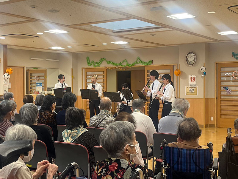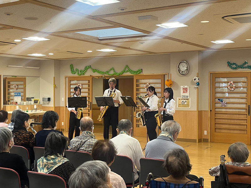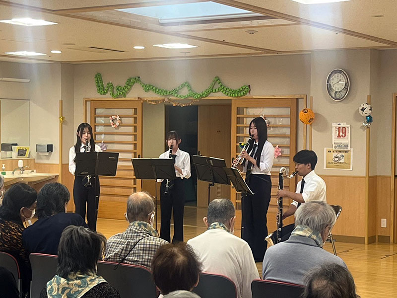 東大阪養護老人ホーム診療所にて行われたふれあい祭りに出演しました。 サックスパートで「オー・シャンゼリゼ」、クラリネットパートで「塔の上のラプンツェルメドレー」などさまざまなパートでアンサンブルを披露しました。