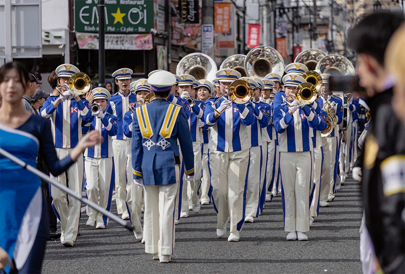 2日はオープニングパレード、オープニングセレモニー、3日は吹奏楽部単独コンサート、応援部乱舞、4日はグランドフィナーレに出演させていただきました。