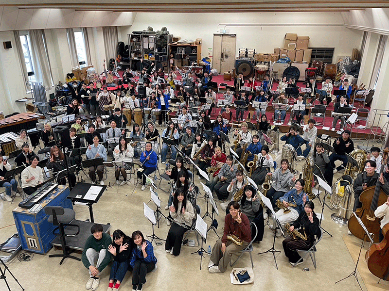 大阪府立淀淀商業高校吹奏楽部の皆さんと合同練習を行いました。 「故郷の空 in Swing」を一緒に練習し、またパート練習や昼食などを通じてお互いに交流を深め合いました。 淀商業高校の皆さん、ありがとうございました。