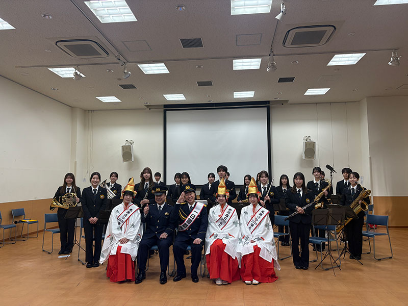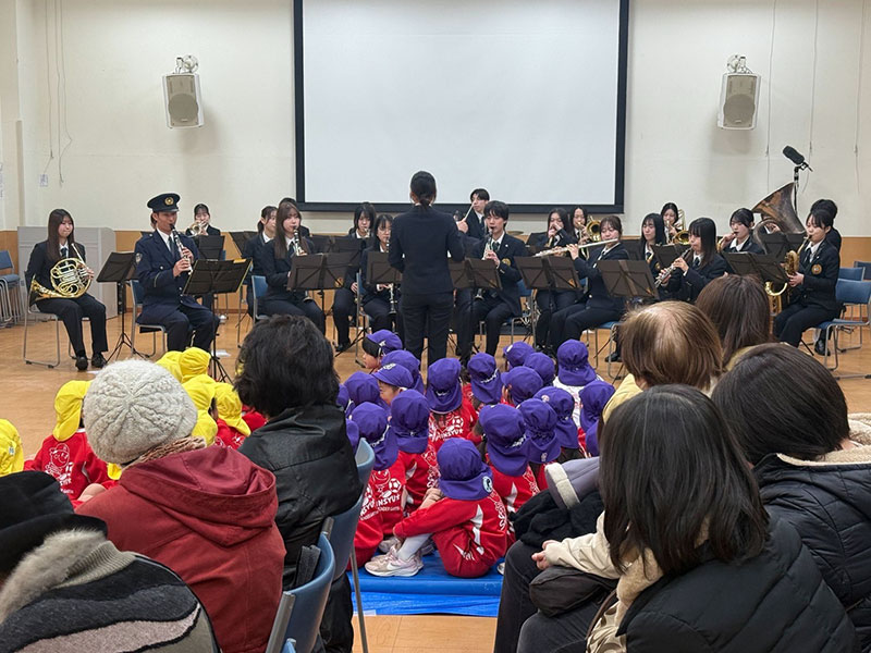 布施警察署「110番の日」に出演致しました。 「勇気100%」「夢をかなえてドラえもん」、サックスアンサンブルで「アンパンマンメドレー」などを演奏しました。 子供たちから大人の方までたくさんの方の笑顔を見ることができ、とても温かな時間となりました。 今回の経験を励みに、これからも音楽を通して地域の皆様に元気と笑顔を届けていきます。