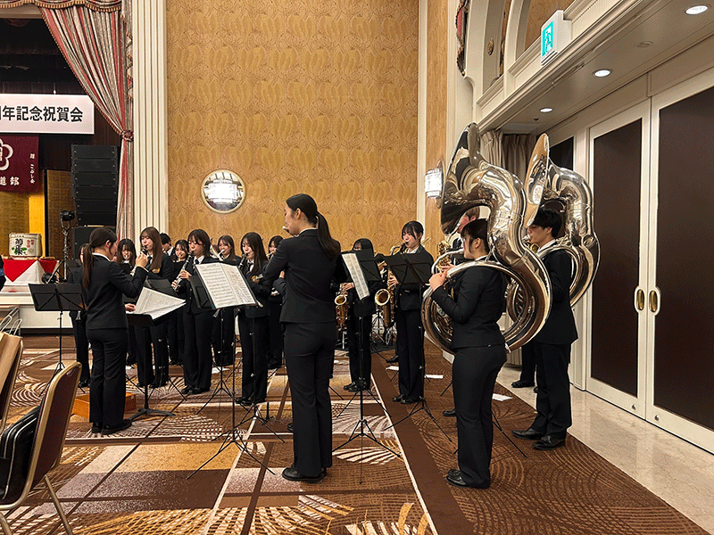 シェラトン都ホテル大阪で行われた「空手道部創部80周年記念祝賀会」に出演しました。 「故郷の空 in Swing」や「大阪LOVER」などの演奏を披露し、会場を活気づけました。 終盤には応援部の方々との合同ステージを行い、」会場上全体が一体となる素晴らしい盛り上がりとなりました。 空手部の皆様、この度は創部80周年を迎えられましたこと、心よりお祝い申し上げます。 貴重な機会をいただき、誠にありがとうございました。
